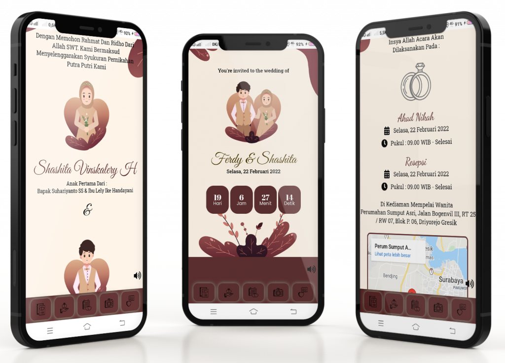 Buat dan bagikan undangan pernikahan kamu dengan berbagai pilihan tampilan undangan yang kekinian, membuat pernikahanmu makin berkesan dengan berbagai macam desain undangan yang menarik dan tampil baik di semua perangkat digital.